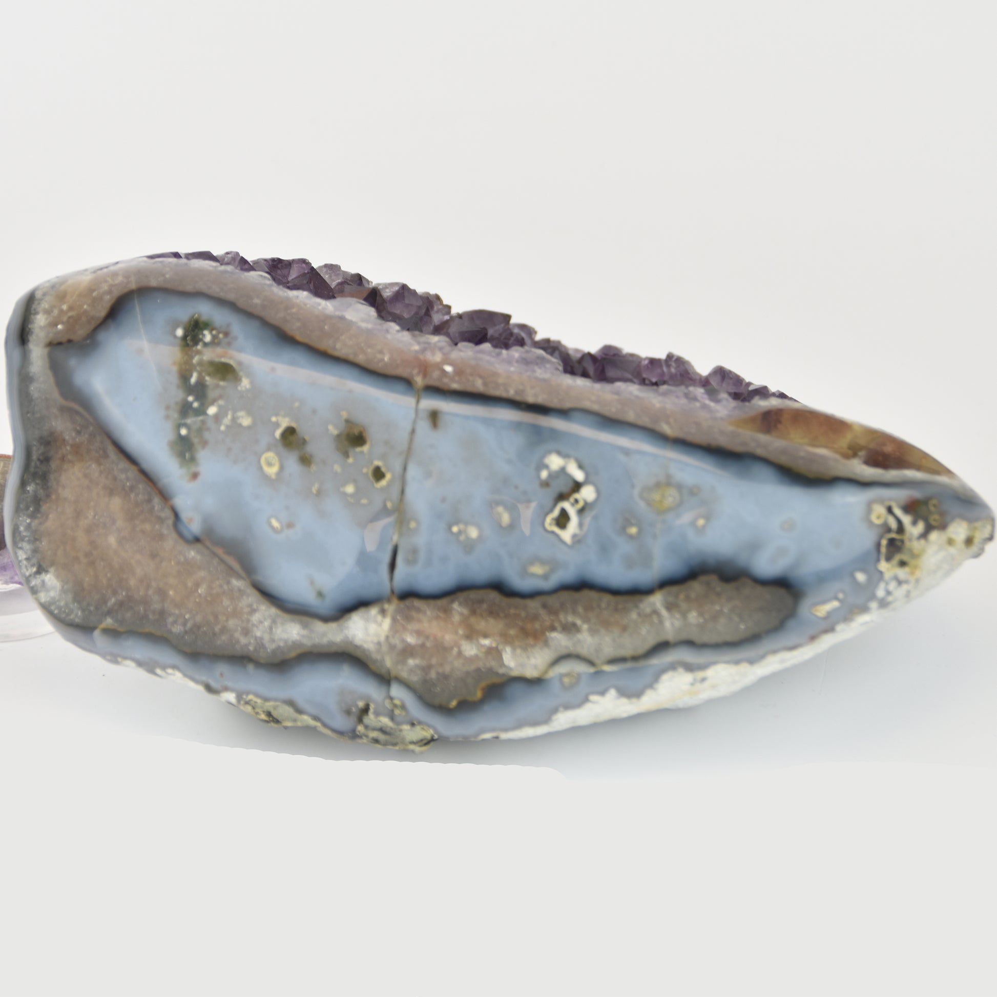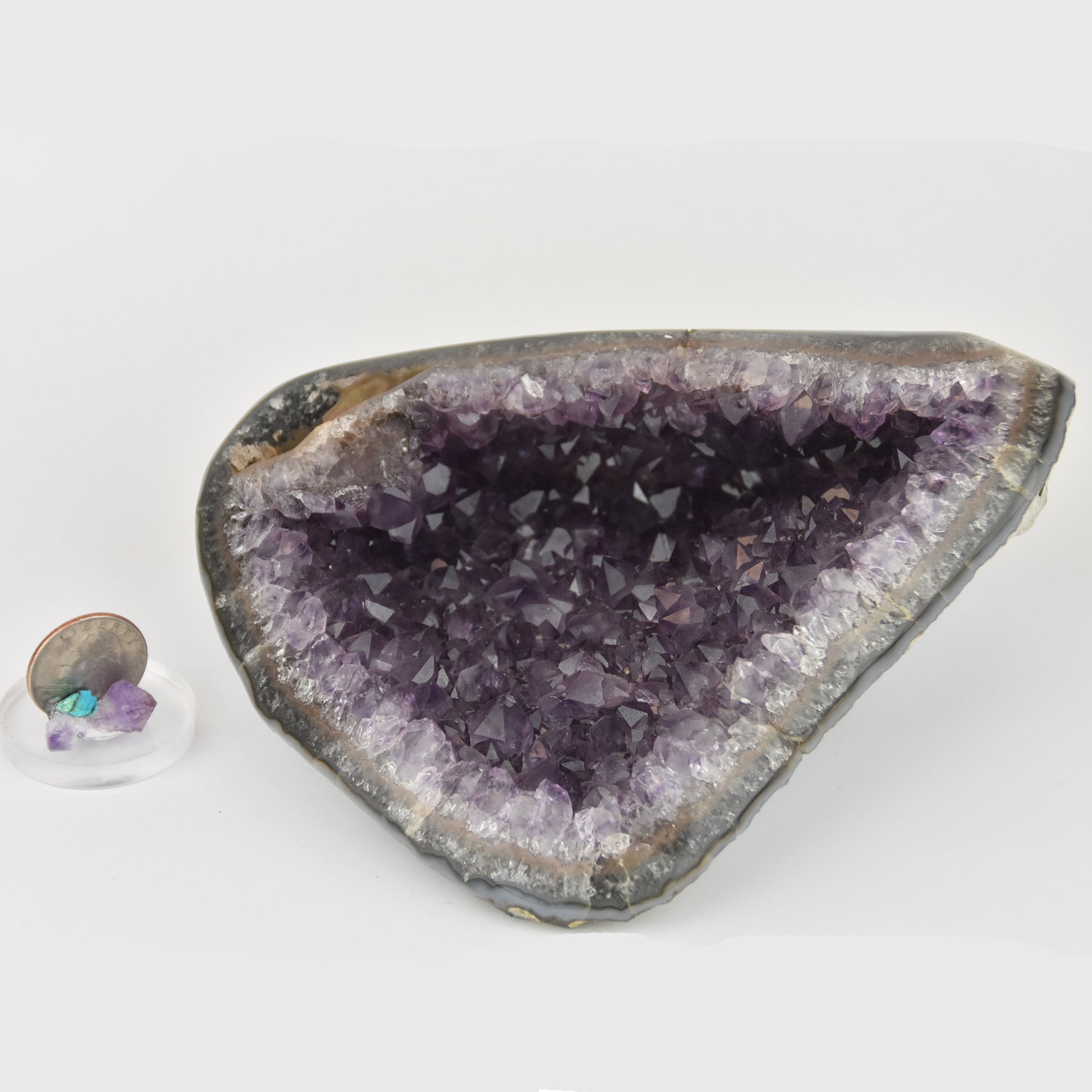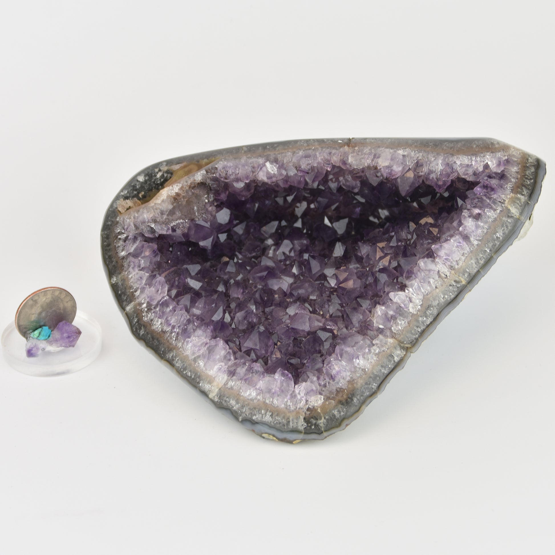 This stunning Amethyst Geode from Uruguay is a natural wonder. Fully polished outside, it features a beautiful array of purple crystals, making it a truly special addition to any collection.